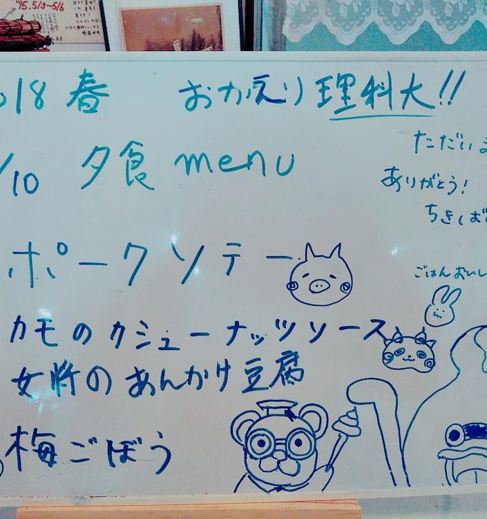 最終日、理科大が帰った後には献立を書くパネルにこんな書置きが。