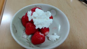 いちごにかけてみたり・・・・ちなみにこのいちごはお隣さんが作っているもの。甘くておいしい☆
