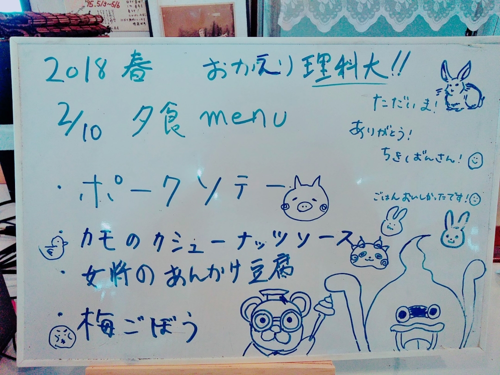 最終日、理科大が帰った後には献立を書くパネルにこんな書置きが。