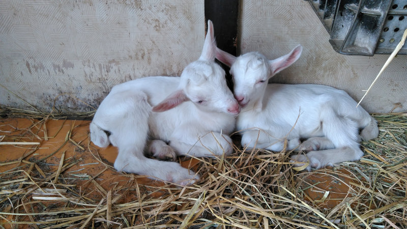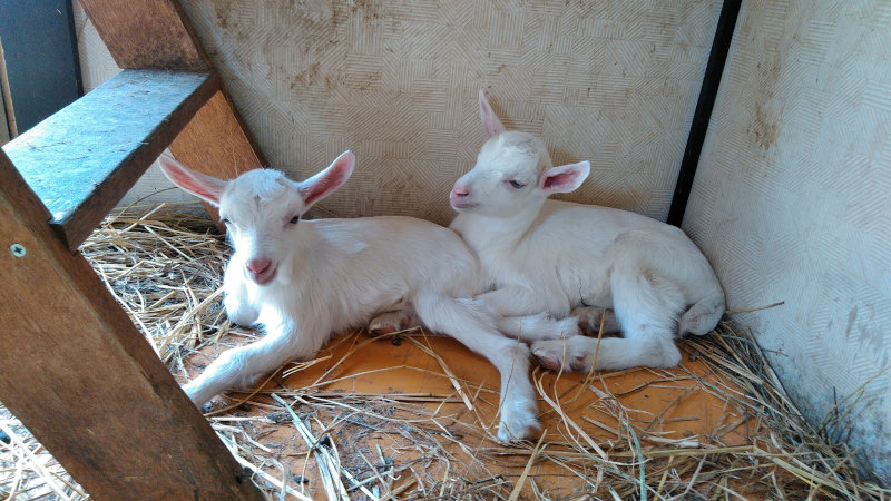 日曜日に産まれたので、というか聖誕しました二匹の子やぎさん。このブログをしたためているのが金曜日なので、誕生というか聖誕から五日が経過しています。