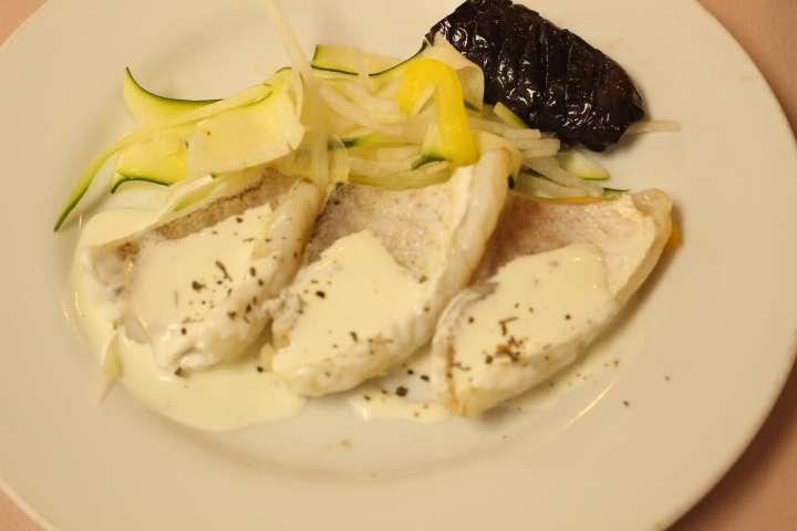上の写真は今年の新メニュー。アマダイのソテーゴルゴンゾーラクリーム仕立て。癖の強いゴルゴンゾーラですが、しっとり淡白な身ながら非常に旨みの強い高級魚、アマダイの風味を殺しません。