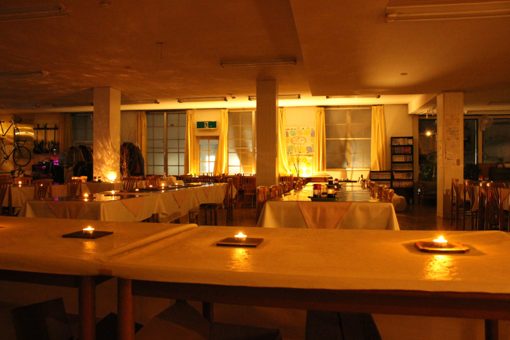 ・夜はろうそくをともしてカフェラウンジを開催。